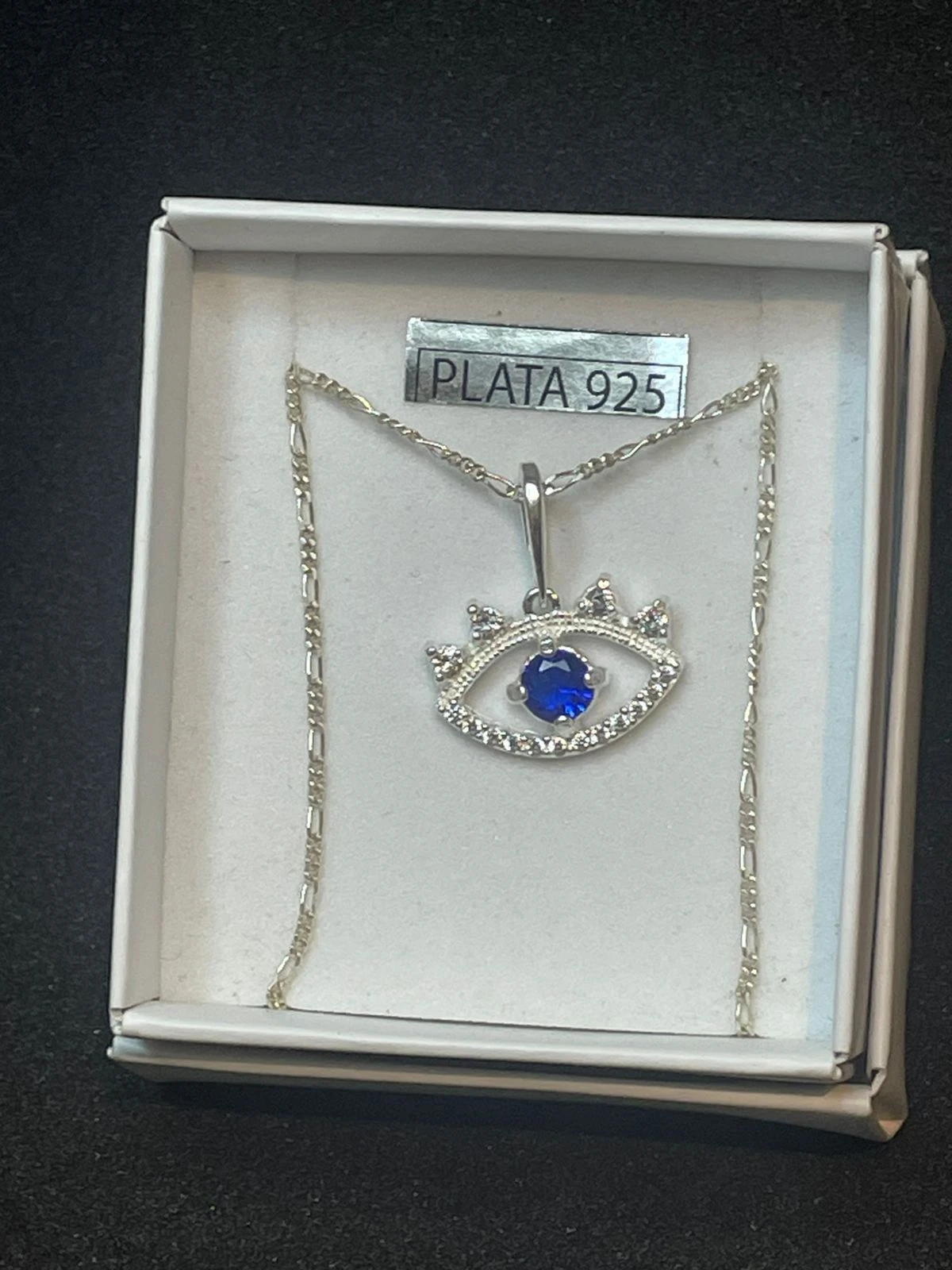 Material: Es de plata 925, como indica la etiqueta en la caja, y el dije está adornado con piedras cúbicas (circón) blancas y azules. Significado: El símbolo del ojo turco, también conocido como Nazar Boncugu, se utiliza en varias culturas para alejar las malas intenciones y la mala suerte. El color azul es el más común y se asocia con la protección, la buena salud y las buenas energías..