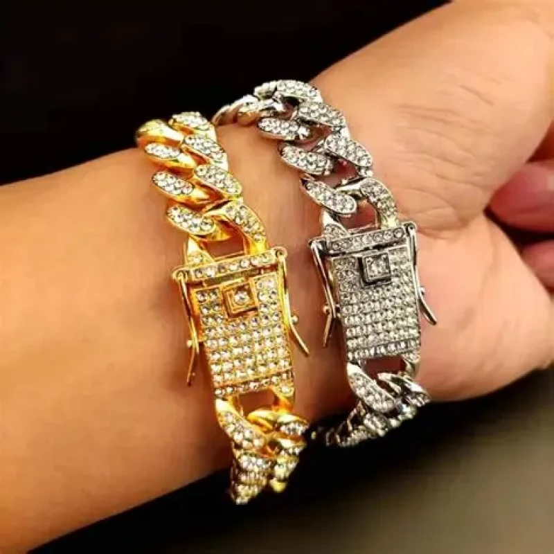 Con un diseño de cadena de eslabones cubanos, esta pulsera irradia un estilo rock hip-hop, perfecto para personas a la moda